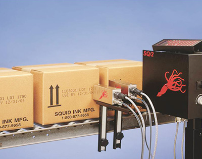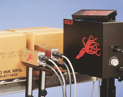 Squid Ink的SQ/2喷码机可让生产商们在各种产品表面实现高质量、低成本点阵式喷印。实际上,SQ/2在当今工业领域提供了每个字符低成本的喷印。用户可在两种类型机器中选择:水基喷印系统用于在瓦楞纸箱、纸或木材等多孔材质表面喷印;或者酮基喷印系统用在塑料、薄膜、金属、玻璃等无孔材质表面喷印。